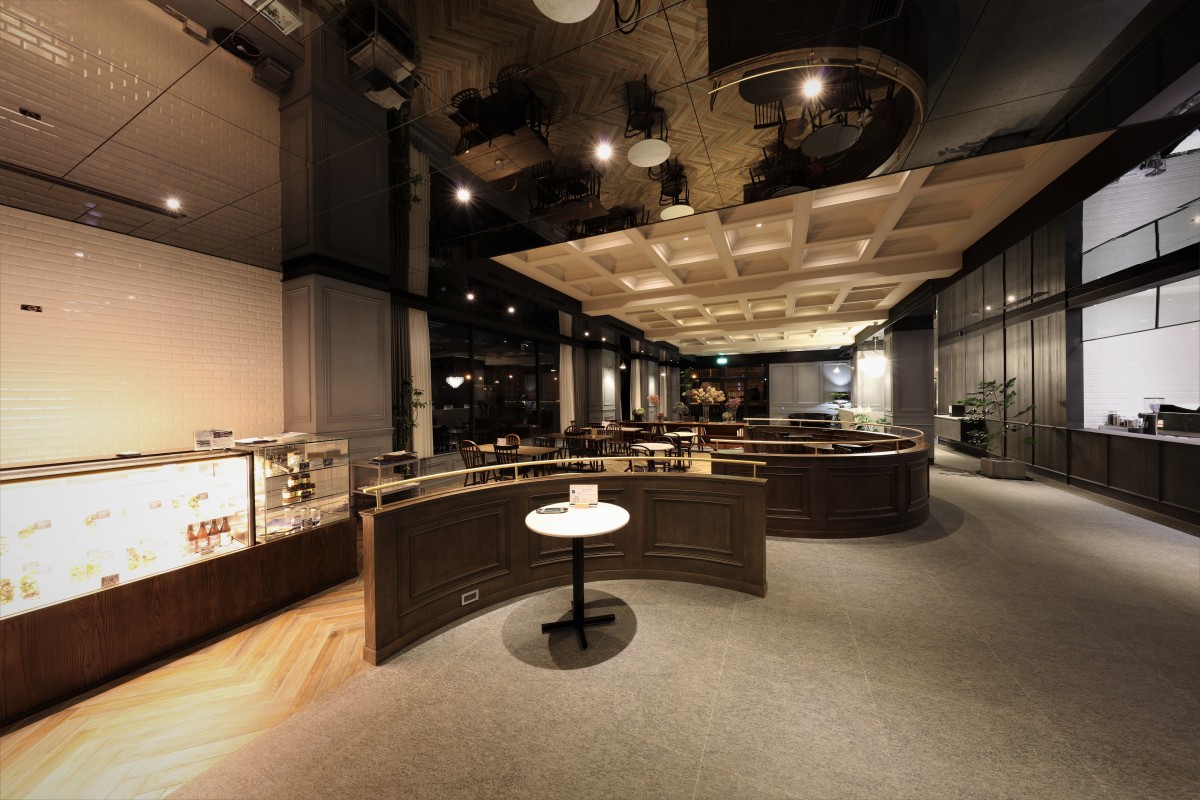 Counter, restaurant, water dispenser, newspapers and magazines.